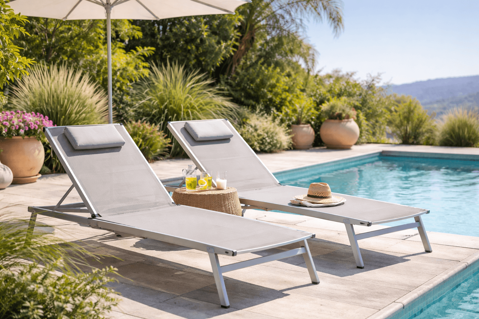 Un bon transat piscine est stable, confortable, simple à déplacer et pensé pour rester dehors. Dans la plupart des cas, les modèles en aluminium avec toile textilène restent les plus faciles à vivre autour d’une piscine.